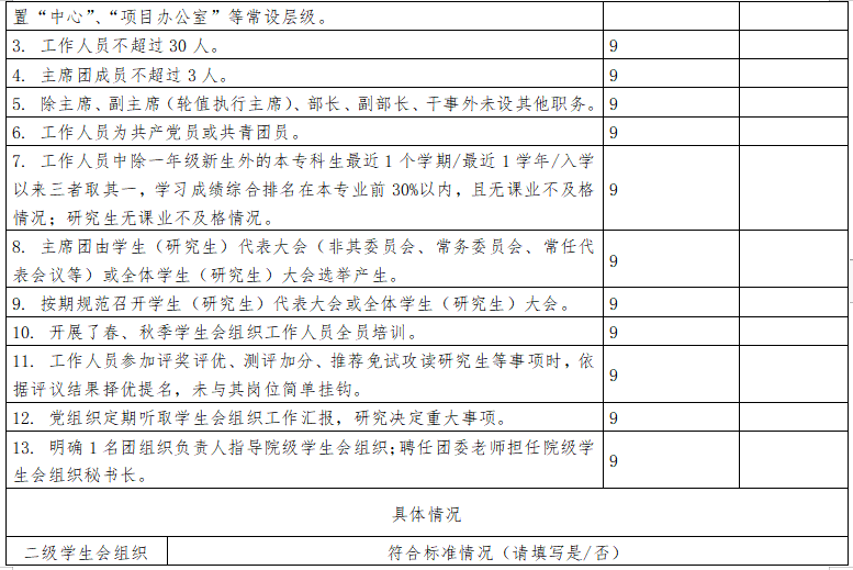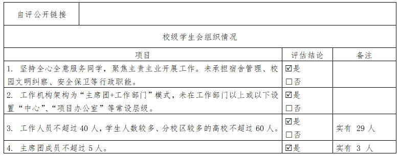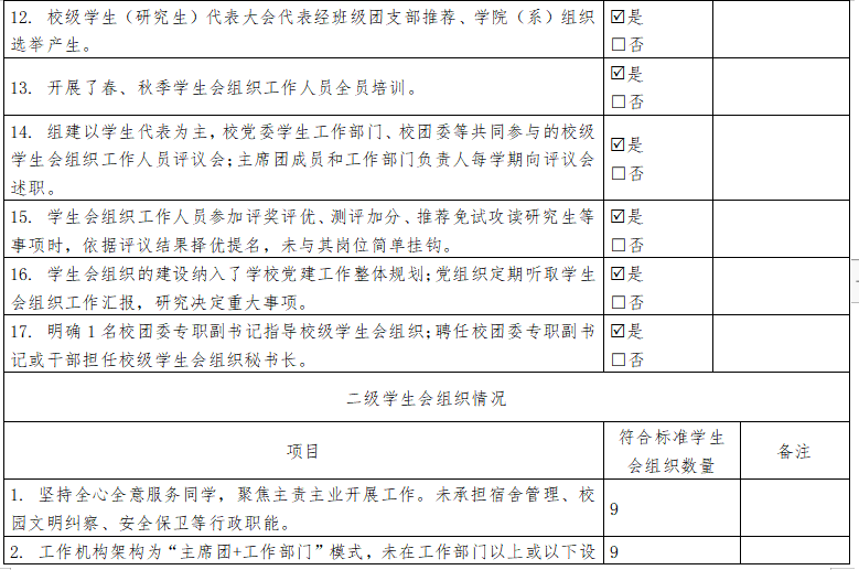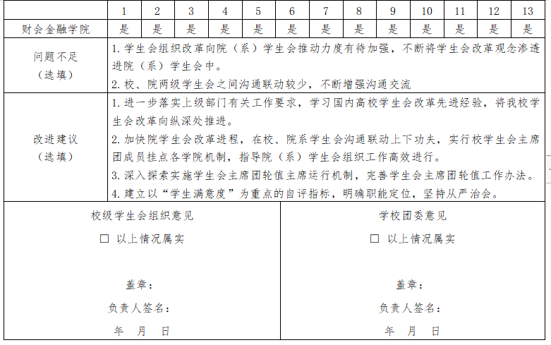 组织名称:___体育买球官方网站____R学生会/□研究生会 二级学生会组织(含二级院系、书院、分校区等学生会、研究生会)数量:___9____ 是否已由省级团委、学联核查(复评):□是/R否 注:1. 如本校同时有校级学生会、研究生会,可复制上表记录另一校级学生会组织情况; 2. 本表一式两份,分别由学校团委、省级学联秘书处留存备查,扫描版由省级学联秘书处汇总报送至全国学联秘书处。 上一条:院团委指导学生会主要责任人 下一条:宜春职业财会金融学院学生会组织改革情况