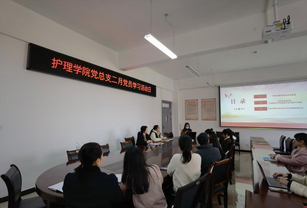 为深入学习贯彻党的二十大精神,全面落实学校“三比三争”工作动员会议部署,近日,护理学院党总支在和济楼C218党员活动室开展二月党员学习活动日活动。活动由院党总支书记胡蓉主持,全体教师党员及在校学生党员参加。