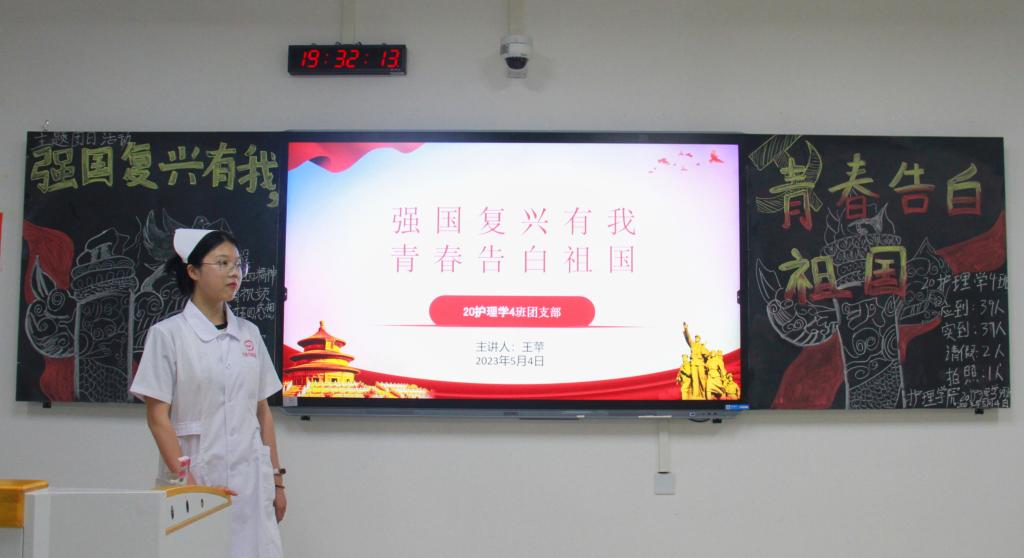 为深入学习宣传贯彻党的二十大精神,引导激励广大青年学子奋进新征程、担当新使命,5月4日,护理学院各班开展“强国复兴有我,青春告白祖国”主题团日活动。活动由各班辅导员(班主任)主持,全体同学参加。