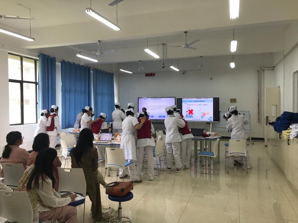 本次开放式观摩教学由护理教研室曾秀荣老师和智慧健康养老服务与管理教研室杨艳霞老师主讲,讲授内容分别为《气道异物梗阻》和《认知功能障碍评估》。两位老师对教学实施的每个环节都进行精心设计,融入了课程思政元素与虚拟仿真技术,实现了“理论课+实践课+虚仿课”的教学新模式,强化了虚拟现实情景体验,使学生在短时间内进入相应情境,真实体验在现实生活中操作的感觉,营造了强烈的教学互动氛围。