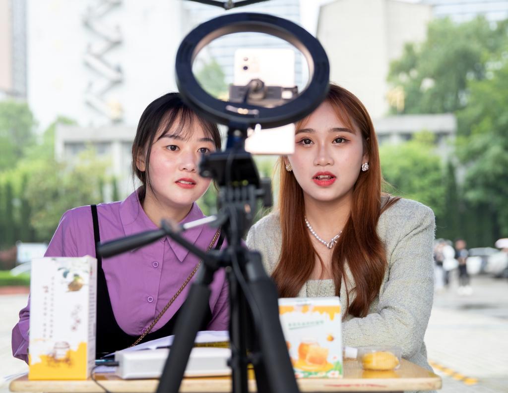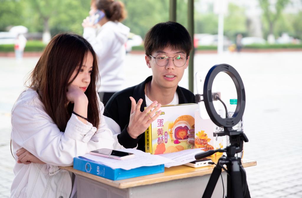 4月28日下午,一场以“五·四”接力大直播为主题的抖音直播带货活动在买球官网第一教学楼前拉开帷幕。本次活动由校党委宣传部、团委、创新创业学院主办。来自护理学院、医学院、师范学院、财会金融学院等学院的八支队伍参与活动。
