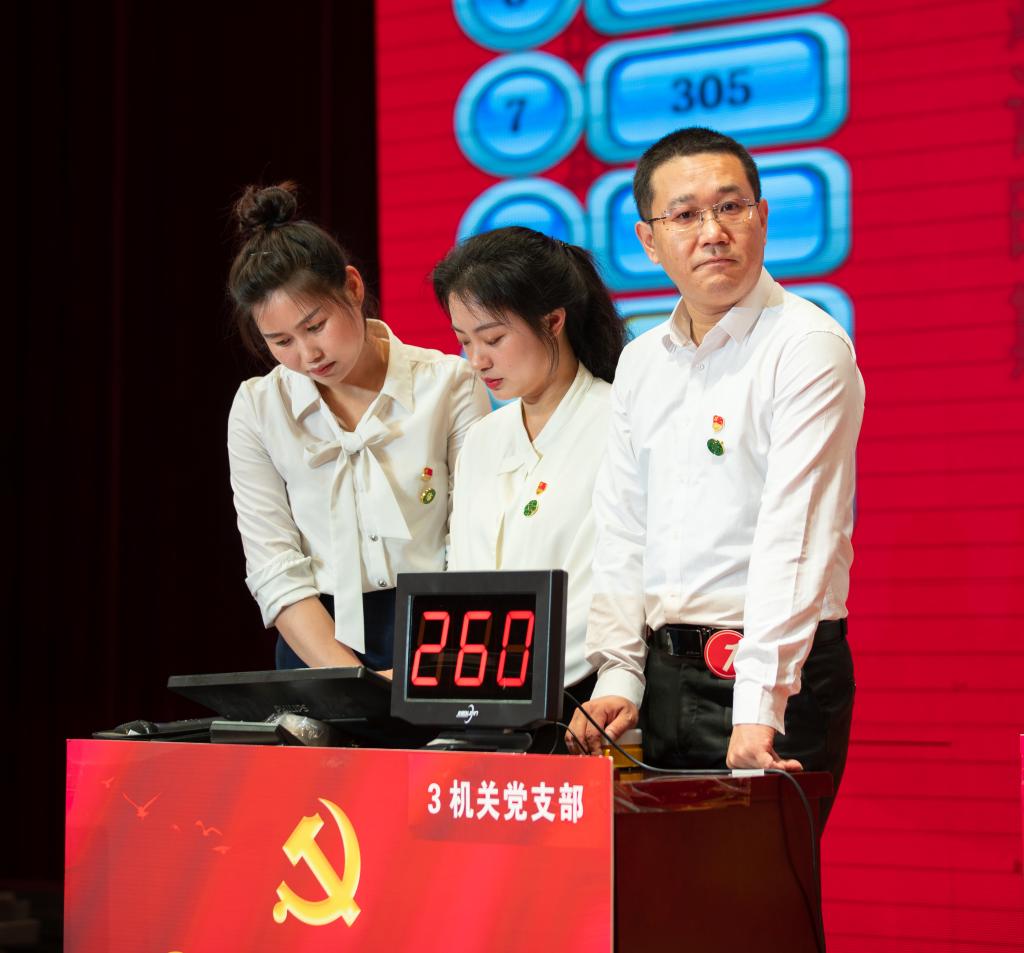 比赛中,十支代表队依次选择题包作答。“争分夺秒”环节里各队队员抓紧时间答题,“快人一步”环节以抢答方式竞答,现场竞争激烈,气氛紧张。大家在“险中求胜”环节中以丰富的党史知识相互竞争,突破自我。