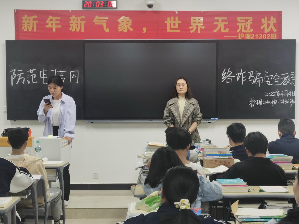 为认真做好我院学生安全防范教育,预防并切实减少电信网络诈骗案件的发生,保障我院学生的财物安全,4月4日晚,护理学院组织全院各班召开防范电信网络诈骗安全教育主题班会。