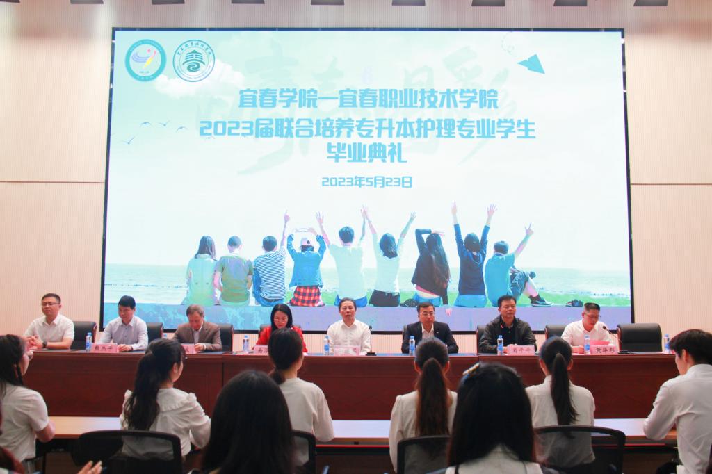 青春逢盛世,奋进新百年。5月23日,宜春学院、体育买球官方网站在学术报告厅隆重举行2023届联合培养专升本护理学专业学生毕业典礼。宜春学院党委委员、副校长李建军,教务处副处长肖平平,医学院院长易少波,学工处副处长黄华彩;体育买球官方网站党委副书记、校长邱军,党委委员、副校长易滨秀,教务处处长熊杰平,学工处处长谢海英,护理学院院长吴少林,教师代表及2023届联合培养专升本护理专业全体学生出席典礼,典礼由易滨秀主持。