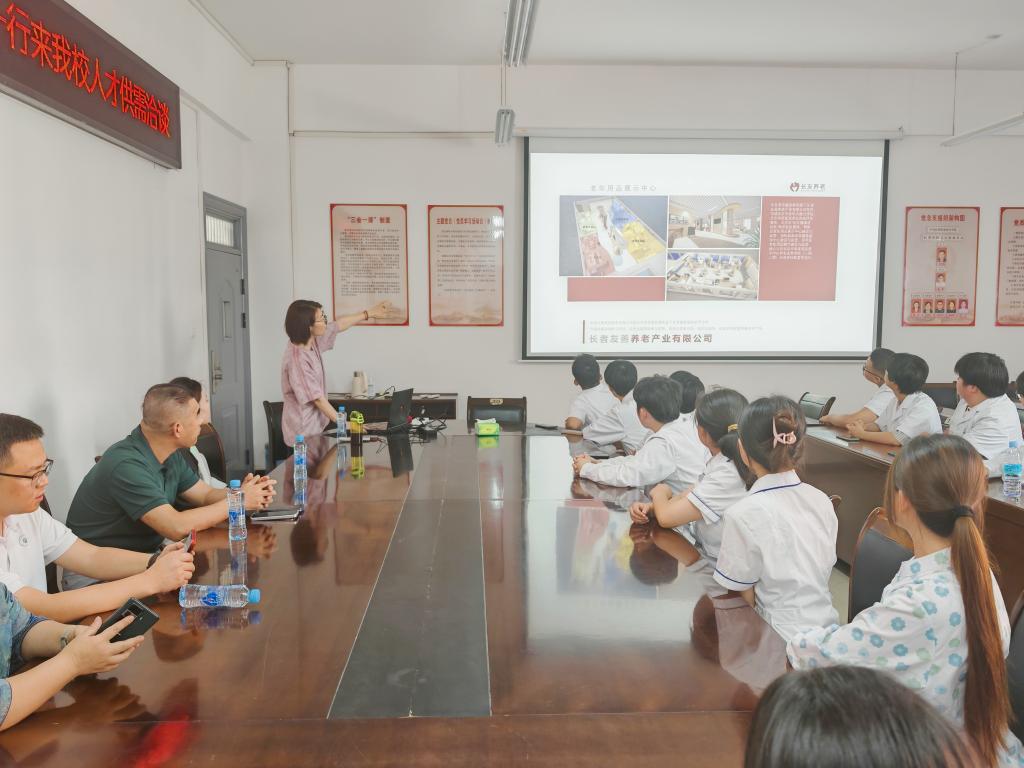 6月3日,长友养老服务集团人力资源总经理朱立丽一行来买球官网开展人才供需洽谈,护理学院党总支书记吴少林,院长易国萍,副院长李学坤、黄芳参加洽谈会。