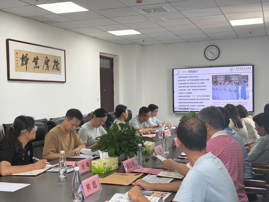 江西长天教培集团职业教育事业部副经理李荟荟、江西美年大健康管理有限公司副总经理赵华、江西君亿园科技集团董事长游杰等企业代表到场交流,党委委员、副校长刘叶建出席,校企合作办公室主任文欢及护理学院班子成员参加座谈。