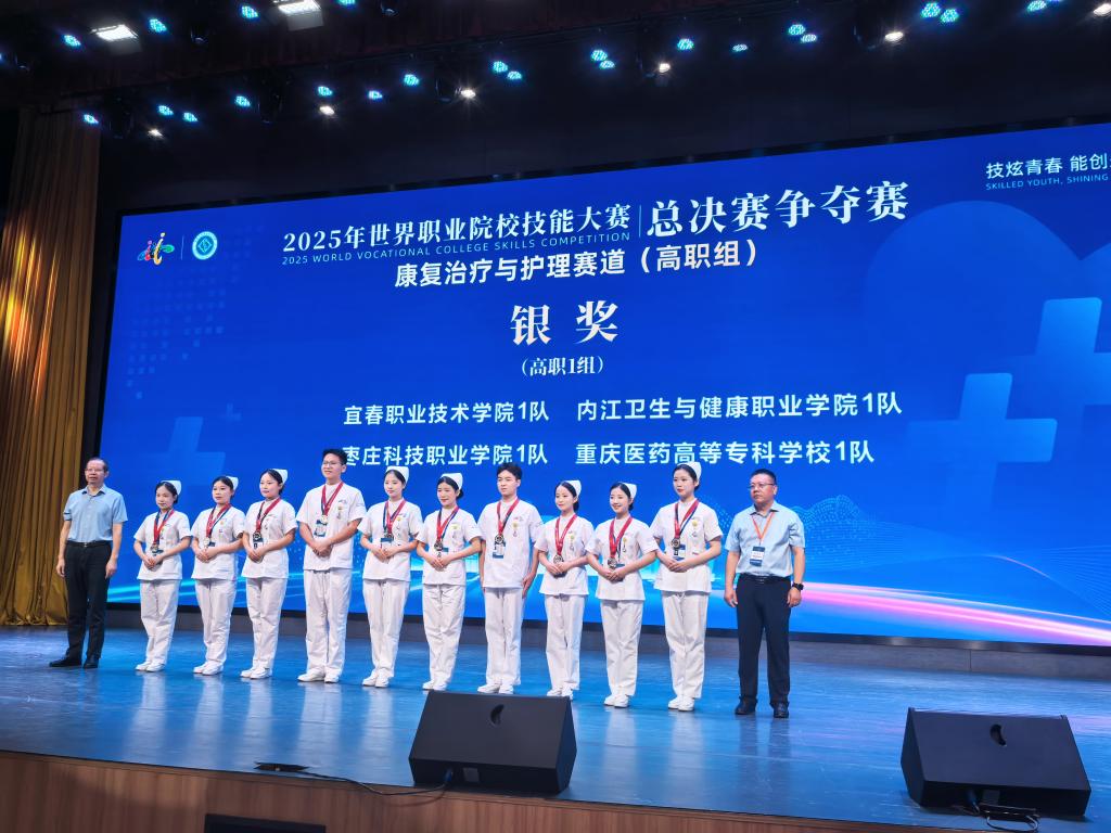 8月30日上午,2025世界职业院校技能大赛总决赛康复治疗与护理赛道(高职组)争夺赛在苏州卫生职业技术学院顺利落幕。本次比赛共汇聚来自全国94支优秀队伍参赛,由买球官网护理学院院长易国萍领队,刘世兰、陈曼莉、李悠梦三位教师指导,学生陈朝玲、沈嘉婷、黄时三位选手以及刘磊(标准化病人)、张小倩(标准化病人家属)组成的参赛团队凭借出色的专业技能和默契的团队配合,最终在众多参赛队伍中脱颖而出,斩获银奖。