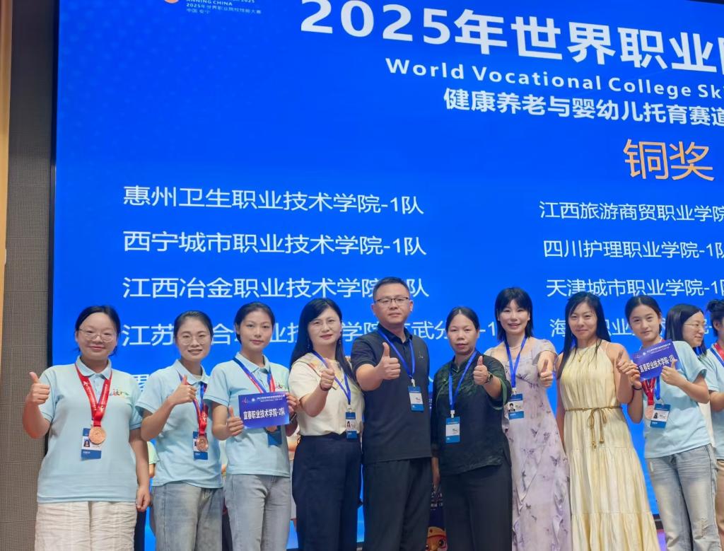 9月2日,2025年世界职业院校技能大赛总决赛争夺赛“健康养老照护与婴幼儿托育赛道”高职组比赛在云南交通运输职业学院顺利落幕。本次大赛共吸引来自全国155支代表队、601名选手同台竞技。由买球官网护理学院指导教师汤薇、吴小华、钟旻昱,学生何娜霞、舒思、张婷、刘学琴组成的参赛队伍,凭借出色的技能和默契的团队合作,最终在众多参赛队伍中脱颖而出,荣获金奖!实现了江西省在该赛事金奖零突破。由指导教师杨红、秦忠萍、刘磊,学生李燕妮、张佳瑶、卢泳卉、何杉杉组成的参赛团队获得铜奖,为江西省和学校赢得了荣誉。