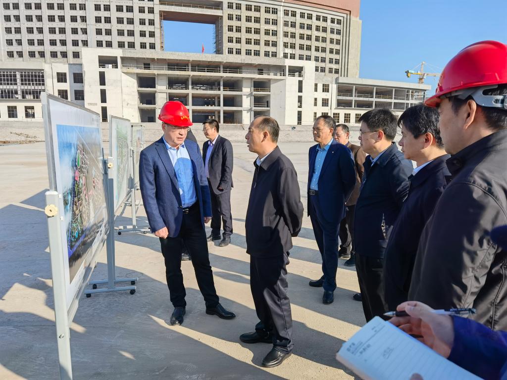 在建设现场,新校区主体结构大部分已封顶。整个校园巍峨壮观,一座崭新的校园呼之欲出。于秀明边看边问,认真听取任军对新校区的建设规划、建设标准、建设进度及后续计划等情况汇报,对新校区的建设工作表示肯定,并要求学校在标准、完备的硬件建设基础上,不断加强内涵建设,提高办学质量和办学水平,把建设宜春职业技术大学作为下一步的奋斗目标,齐心协力实现“专升本”。