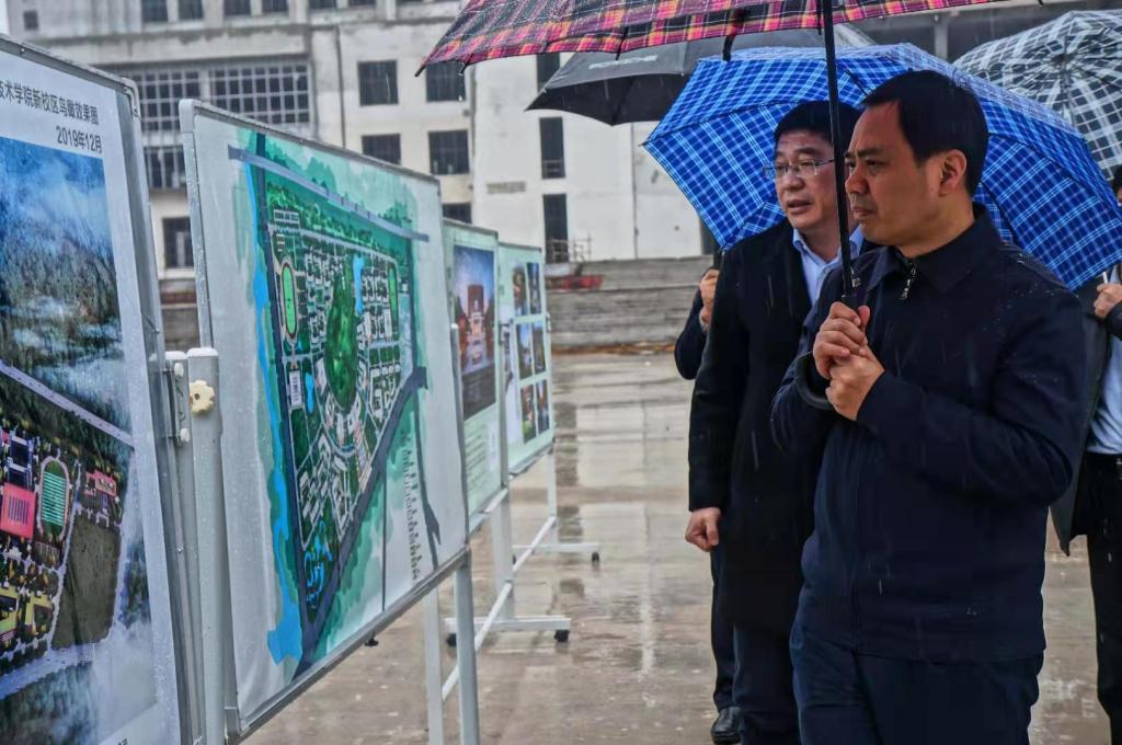 在建设现场,一栋栋高楼拔地而起,矗立眼前,红白相间的涂装分外醒目,蔚为壮观。严允一路看一路听一路问,先后听取了邹进勇对于教体新区规划建设情况的汇报,以及任军关于新校区的校园规划、功能布局、建设进度、办学规模等方面的介绍,并详细询问了学校现有的师资力量及毕业生留宜情况,就项目推进过程中遇到的问题把脉开方。严允强调,项目建设各方要强化红线意识,坚守底线思维,切实抓好建筑施工安全生产管理,主动衔接,统筹协调,攻坚克难,在确保安全质量的前提下高效推进项目建设。严允要求学校抢抓机遇,乘势而上,高起点谋划、高标准部署、高质量推进“专升本”各项工作,推进学校跨越式发展,早日实现升本目标。