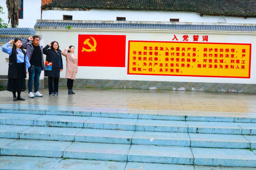 听到这些,大家深受感动,几位党员教师在故居前的小广场重温了入党誓词。宣誓时,铿锵有力的誓词,一字一句,神圣而豪迈。铮铮誓言,体现了党员们对党的无限忠诚,更坚定了入党使命、奋斗初心。