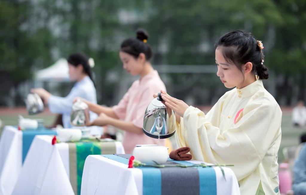 5月9日上午,《茶报春晖》母亲节感恩茶会暨“新龙杯”首届校园茶艺展示会在足球场拉开序幕。买球官网党委书记任军,党委副书记、校长杨云山,江西省妇联兼职副主席胡秀筠,市妇联党组成员、副主席邱丽丹,买球官网党委委员、副校长刘江毅等领导出席。刘江毅代表学校致辞,市女企业家协会会长、江西新龙生物科技股份有限公司董事长胡秀筠女士为本次活动冠名。全校300余名师生和部分家长也参与了此次活动。