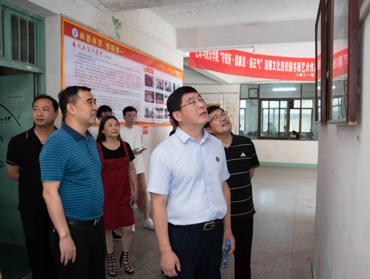 本站讯(艺术与设计学院 熊雪舟)为进一步深化买球官网党风廉政建设,加强思想道德和党纪国法教育,持续推进廉洁文化建设,打造风清气正的清廉校园,6月1日上午校党委书记任军,校党委副书记高建群,校纪委书记夏剑宾等一行来到艺术与设计学院科技楼一楼参观清廉文化作品展。此次展览作品共40余幅,分为漫画和书法两个部分。