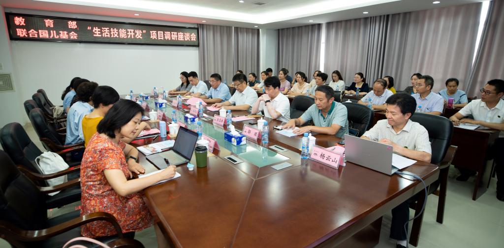 本站讯(学工处 李兵兵)6月27日,教育部与联合国儿童基金会“生活技能开发”项目调研座谈会在买球官网召开。联合国儿童基金会驻华代表处教育处处长潘思纳、高级教育官员王海燕、研究协理郑娜,教育部职业教育中心研究所主任刘育锋、助理研究员陈彦丰,省委教育工委委员、副厅长裴鸿卫、省教育厅职成处处长汤泾洪、省教育厅职成处干部曹俊,宜春市教体局二级调研员邬顼、职称科科长周元平等领导出席会议。校党委书记任军,党委副书记、校长杨云山,副校长易滨秀、张印华及“生活技能开发”项目组成员参加会议。座谈会由任军主持。