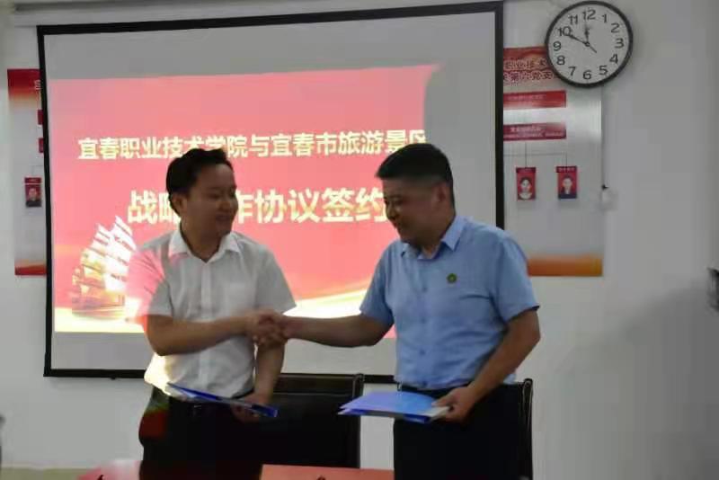 最后,宜春市旅游景区联盟郑东会长与电商与旅游学院陈洪院长签订了校企合作框架协议书,以此为契机,深化产教融合,校企共同打造全新职业技能人才,谋新篇、开新局、促发展、享共赢。