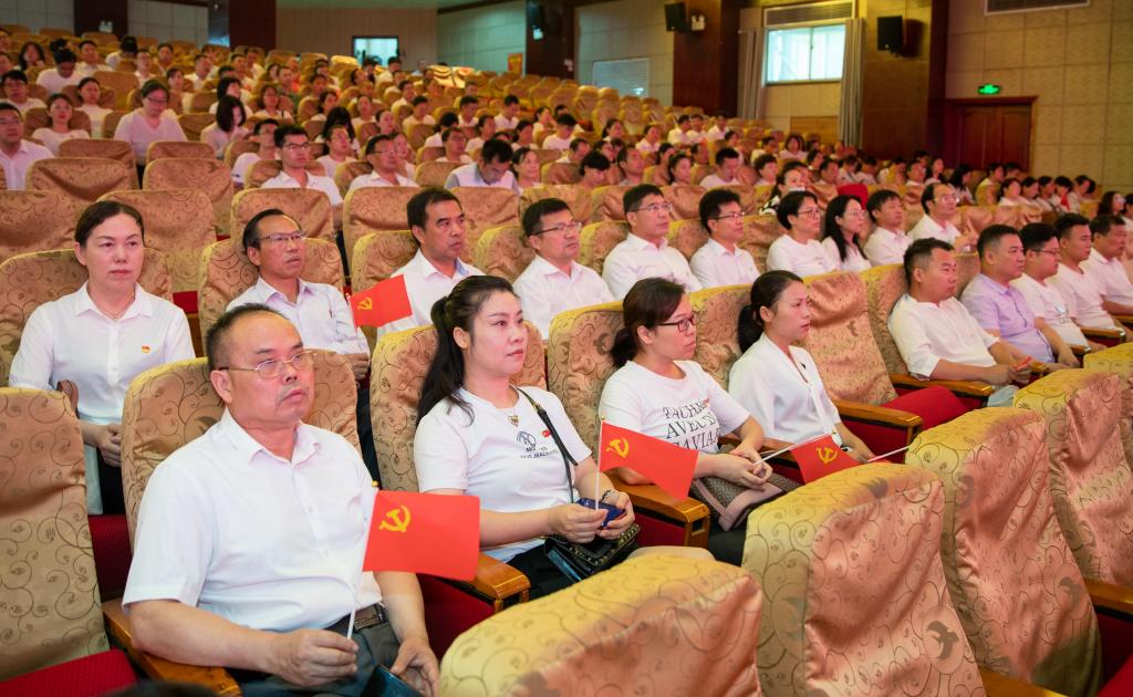 本站讯(党委宣传部 吴霞 特约通讯员 易婧)百年征途波澜壮阔,百年初心历久弥坚。7月1日上午,买球官网党政领导班子成员、全体中层干部、在职党员300余人齐聚科技综合楼学术报告厅,收听收看庆祝中国共产党成立100周年大会,表达对中国共产党百年华诞的真挚祝福。