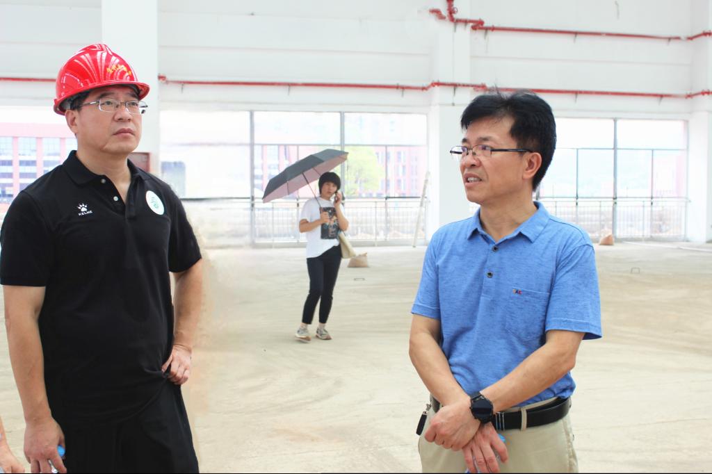 在校园东区,校领导先后查看了正心楼(4号学院楼)、博达楼(5号学院楼)、知源楼(2号食堂)以及雅园(东区学生宿舍)的建设现况,对正心楼后部的地下车库的出口设计展开了讨论研究。接着,沿山而行,来到天工楼(图书综合楼)、静园(西区学生宿舍),简要讨论了天工楼大厅背景墙的文化设计,仔细查看了学生宿舍洗衣房的样板间,并对宿舍区庭院布局、校园北面道路施工方案等提出了有益建议。随后,绕行至校园西区的鲲鹏体育馆(1号风雨操场)、仁济楼(3号学院楼)等地,全面落实装饰装修、道路施工、管网铺设、水电气等配套设施安装等工作的完成情况,对顺利实现首批搬迁和开学目标充满信心。