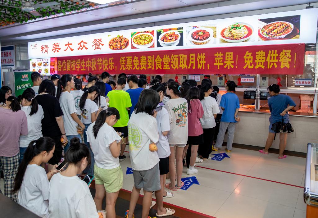 校领导向学生们致以节日问候,祝福大家团团圆圆、平平安安。“吃月饼了吗?”“给家人打电话了吗?”“在学校还习惯吗?”任军与同学们亲切交谈,他说:“中秋佳节之际,同学们虽然不能与家人相伴,但在宜职这个温馨的大家庭中,有爱你们的老师,有可爱真诚的同学陪伴,我相信你们一定不会感到孤单!”