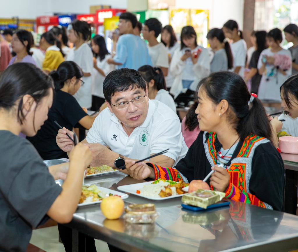 “食堂的饭菜好吃吗?”“学习生活有什么困难?”“对学校有什么建议?”杨云山校长勉励学子们要参与到学校的管理中来,学校会及时帮大家解决“急难愁盼”问题。同时他嘱咐学子们要懂得感恩,在节日期间给亲人送去问候。