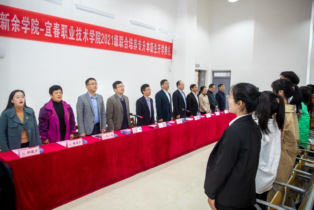 新余学院副院长徐忠麟代表新余学院为新生致辞,徐院长对两校合作办学表示了较高的期望,对买球官网为培养第一届联合培养专升本新生所做出的努力表示感谢,对在座的两百名新生提出要求并寄予厚望。最后,新余学院领导为新生代表佩戴校徽,全体师生合影留念。