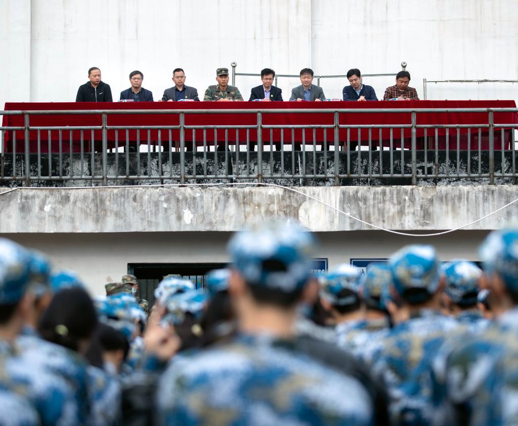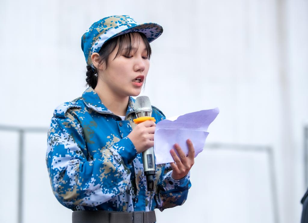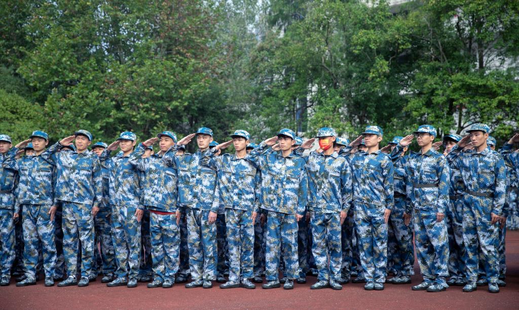 廖秋劲代表学校向2021级全体新同学表示热烈的欢迎,向支持学校军训工作的部队官兵表示衷心的感谢,并对全体参训新生提出了几点要求:希望同学们一要虚心学习,学习军人的好思想、好作风和光荣革命传统,学习他们崇高的爱国主义情怀和艰苦奋斗精神;二要刻苦训练,勇敢接受各种天气的考验,流血流汗不流泪,掉皮掉肉不掉队,在军训中磨练意志品质;三要严守纪律,严格遵守军训纪律,雷厉风行,令行禁止,在思想上、作风上成为一名合格军人;四要团结协作,自觉地将自己融入集体,服从集体,建立起彼此间浓厚的友情,团结合作,步调一致。