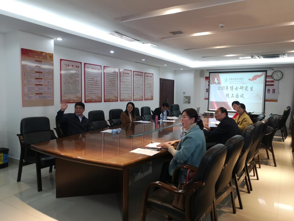 本站讯 (党委组织部 方玲)为切实做好疫情防控期间博士引进工作,11月18日上午,买球官网在科技综合楼413会议室开展博士招聘首次线上面试。党委书记任军,党委副书记、校长杨云山,党委副书记高健群,副校长易滨秀、刘军,党委委员、组织部部长刘叶建,人事处处长熊淑萍以及相关二级学院院长担任面试评委,面试由刘叶建主持。