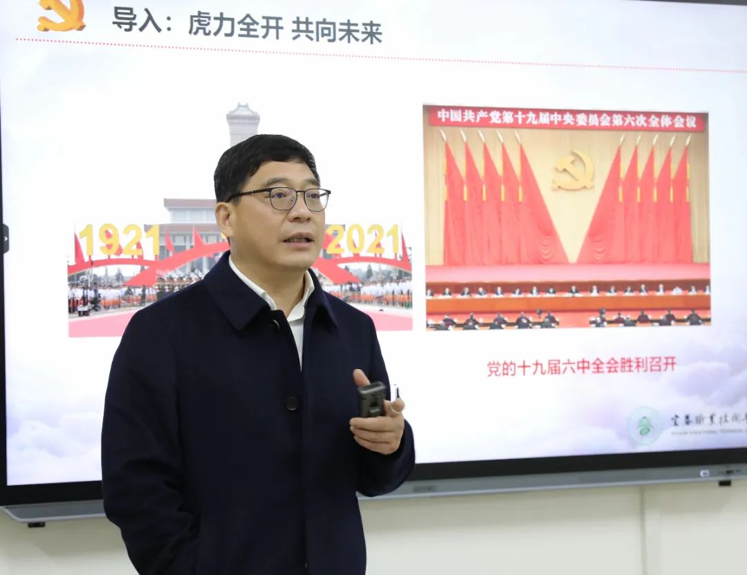本站讯(马克思主义学院 刘明明 卢凯)新学期伊始,为深入学习贯彻党的十九届六中全会精神和习近平总书记关于思政课建设的重要指示精神,学校党政领导班子全体成员分别来到各二级学院为学生上思政课暨“开学第一课”。