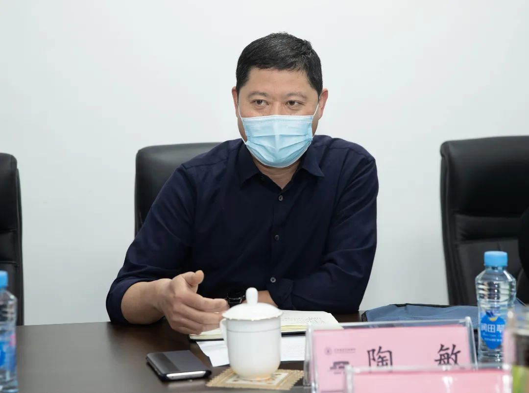 本站讯(宣传部 陈畅)3月19日上午,在市教体局二级调研员陶敏的带领下,宜春市教育工作领导小组第四督查组来到买球官网督查疫情防控工作情况。校党委书记任军,党委副书记、校长杨云山,副校长张印华和相关部门负责人陪同调研。在天工楼A708会议室召开的座谈会上,任军简要介绍了买球官网疫情防控工作情况;杨云山针对应急指挥体系常态化、学生疫情期间管理、师生核酸检测情况和接种疫苗情况作了说明;张印华从学校防疫工作机制、学校人员管理情况和防疫物资配备情况向督查组进行了介绍。