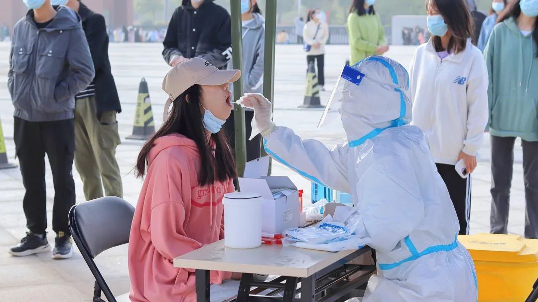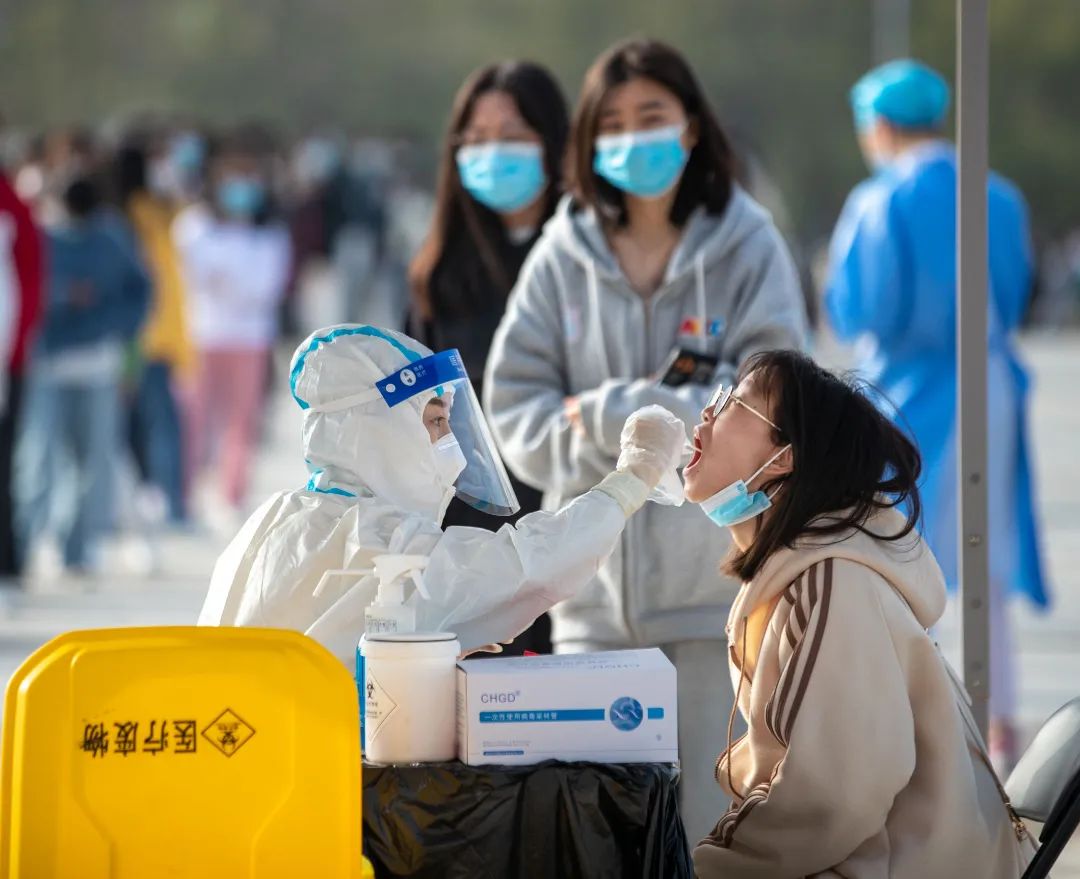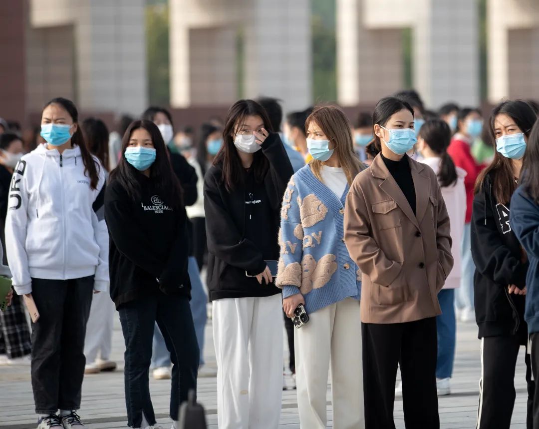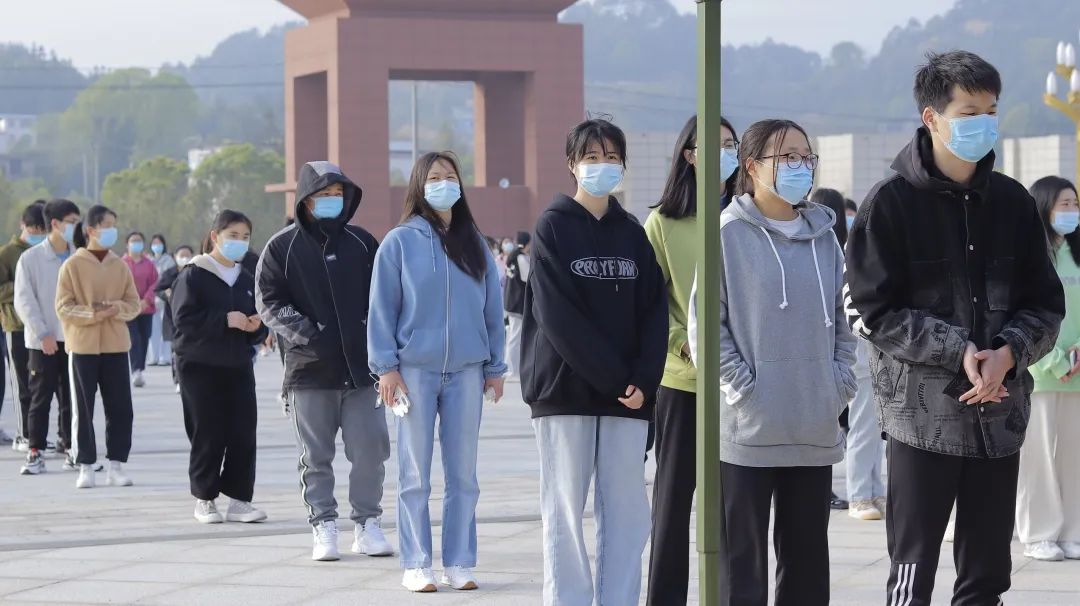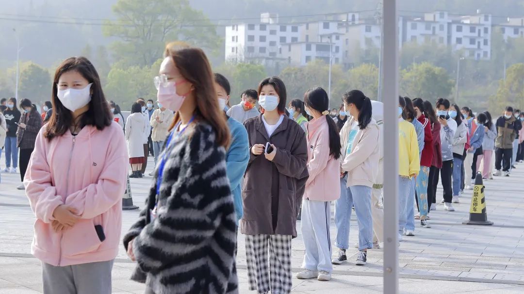 核酸检测现场,师生们按照防疫要求戴好口罩、保持安全间隔距离,分10人一组依次进行采样,采样结束后迅速离开现场。