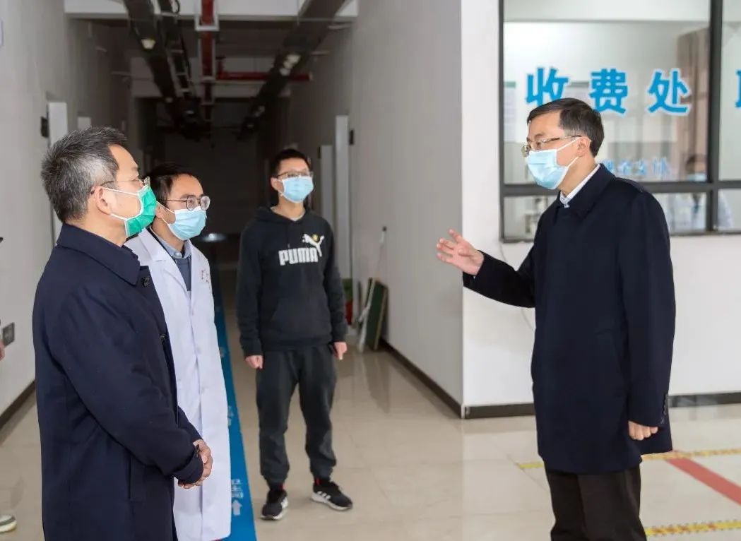 随后,邱军一行来到附属医院,询问疫情防控期间附属医院接治患病师生的工作流程以及对发热师生的处理方式。他强调,在疫情防控期间,医院要专门设立发热隔离区域,完善发热就诊的工作流程并针对疫情防控的突发性事件形成工作预案,提前设想,提前谋划。