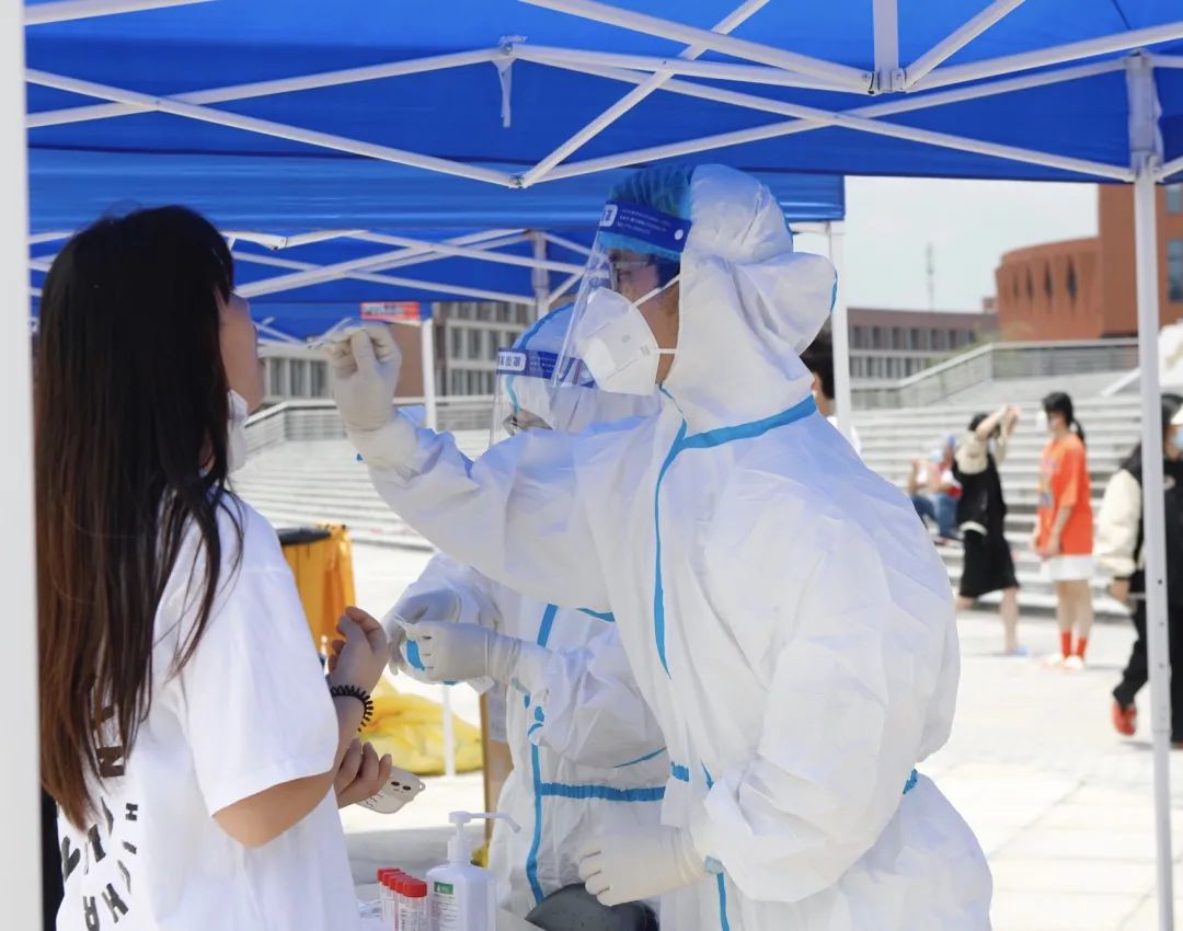 核酸检测现场,在校教职员工、学生等按照防疫要求佩戴好口罩、保持一米间隔距离,经查验健康码、测温、扫描核酸检测码后,分20人一组依次进行口腔咽拭子标本采样,采样结束后师生们迅速离开现场,避免人群聚集。