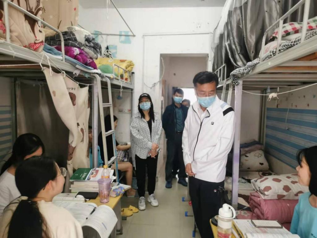 本站讯(护理学院 张蔺珊)自5月8日始,受新冠肺炎疫情影响,买球官网按照宜春市新冠肺炎疫情防控应急指挥部要求,实施临时静态管理,开展线上教学。一周来,校党委副书记、校长邱军多次率队深入教室、实训室和寝室,走访看望护理学院学生,带来学校党委行政的关心关怀。