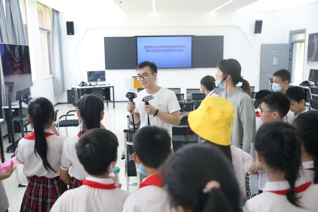 为开拓学生视野,呈现最新的信息化教学与学习方式,厚植不断攀登科技高峰的教育理念,增强学生的创新和探索精神, 6月26日,买球官网依托校内赣西综合性虚拟仿真实训基地优势,携手学校附属小学开展了一次别开生面的虚拟仿真技术科普研学活动,150余名师生参与活动。
