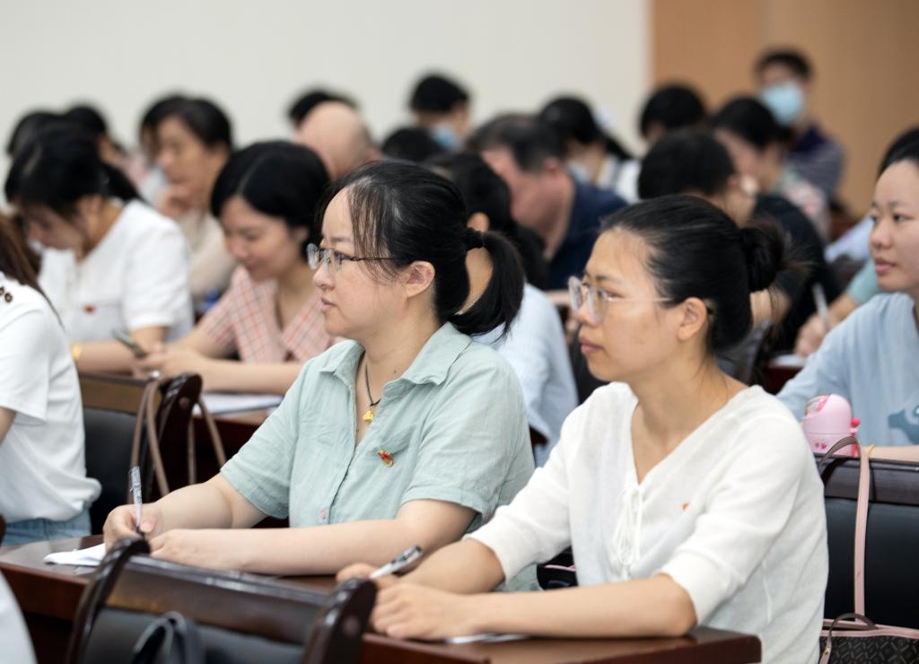本站讯(护理学院 胡蓉)为进一步深入学习贯彻习近平新时代中国特色社会主义思想,巩固拓展党史学习教育成果,提升党员干部的素养和能力,6月29日上午,校党委副书记、校长邱军在天工楼学术报告厅为党员干部讲授“初心如磐担使命 奋楫扬帆启征程”专题党课。机关第三党支部、护理学院全体教师80余人聆听党课,党课由护理学院党总支书记胡蓉主持。