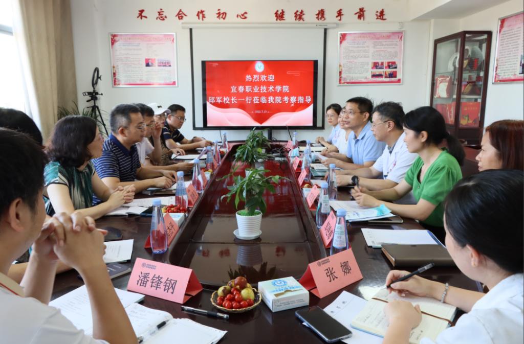 在宜春市第二人民医院,邱军一行与院长涂德幸、副院长李平、林汝平、谭启林、纪委书记范丰及科教科、护理部等负责人调研交流。