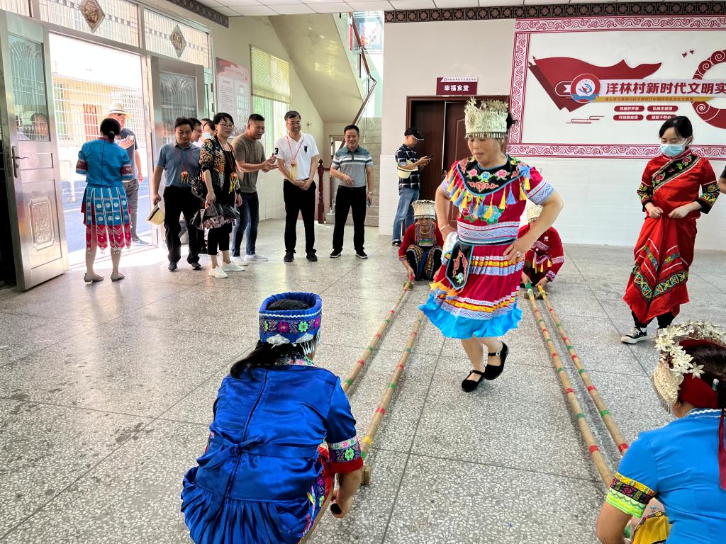 在村党支部书记张胜德等村干部的陪同下,先后实地察看了洋林村归侨长廊、七彩民族广场、洋林民族活动中心、洋林村新时代文明实践中心、洋林“智慧乡村”指挥中心等,体验了洋林村少数民族特色文化和侨乡特色风俗。