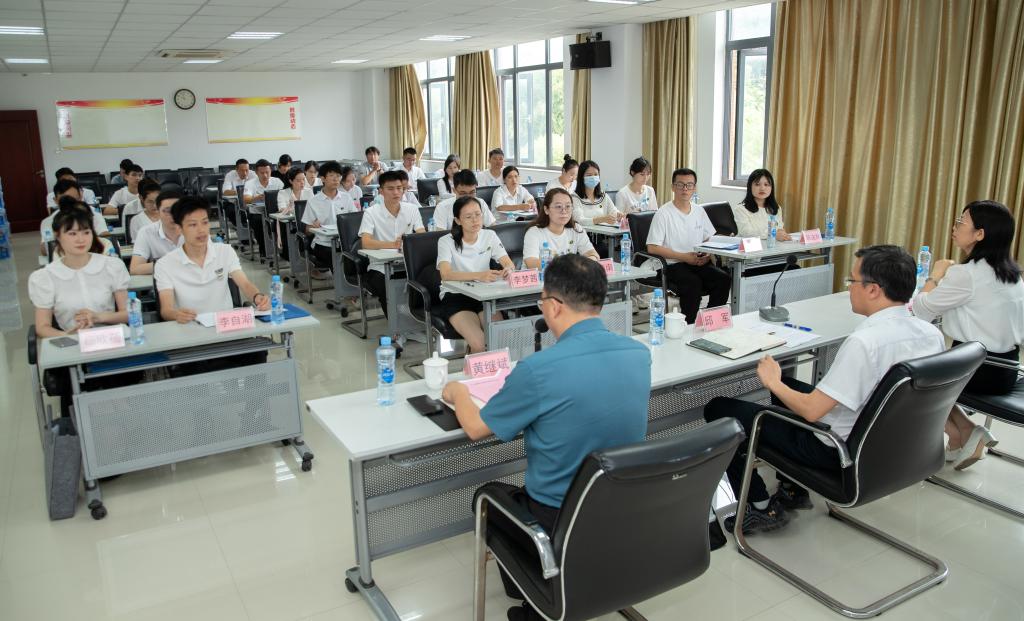 本站讯(人事处 吴旋)8月31日上午,买球官网2022年新入职教师岗前培训在宜春市委党校综合楼216室开班。校长邱军、党委副书记黄继斌、人事处负责同志及30位新入职教师参加开班仪式,仪式由黄继斌主持。