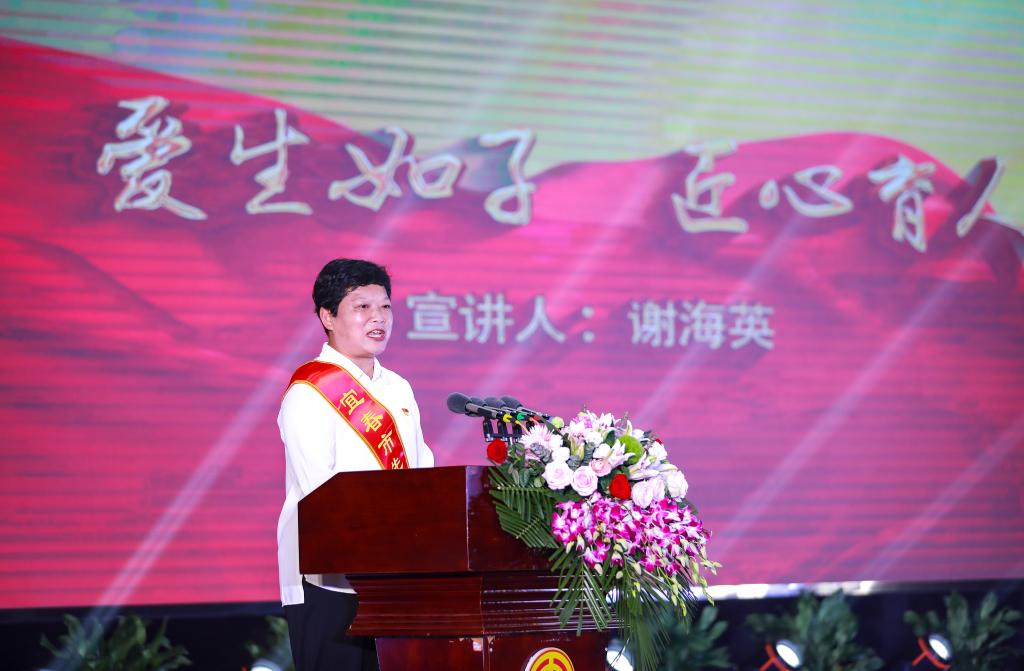 谢海英同志宣讲的题目先后是《以爱滋养初心,以坚守担当使命》和《爱生如子 匠心育人》。她用真挚的情感,与大家分享了自己在平凡的岗位上刻苦钻研,爱生如子的奋斗故事。表达了坚定信念,勇毅拼搏,以优异成绩喜迎党的二十大胜利召开的坚强决心。她的宣讲赢得了听众的阵阵掌声。