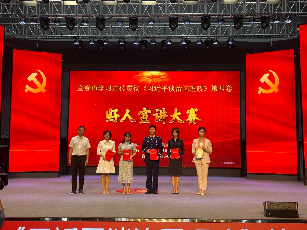 本站讯(党委宣传部 黎佳佳)9月27日,宜春市委宣传部主办,宜春市文广新旅局、宜春市广播电视台承办的宜春市学习宣传贯彻《习近平谈治国理政》第四卷好人宣讲大赛决赛在宜春市广播电视台举行。买球官网师范学院教师李珊荣获全市二等奖第一名,买球官网荣获优秀组织奖。