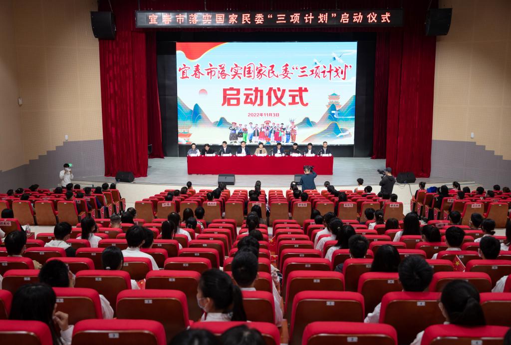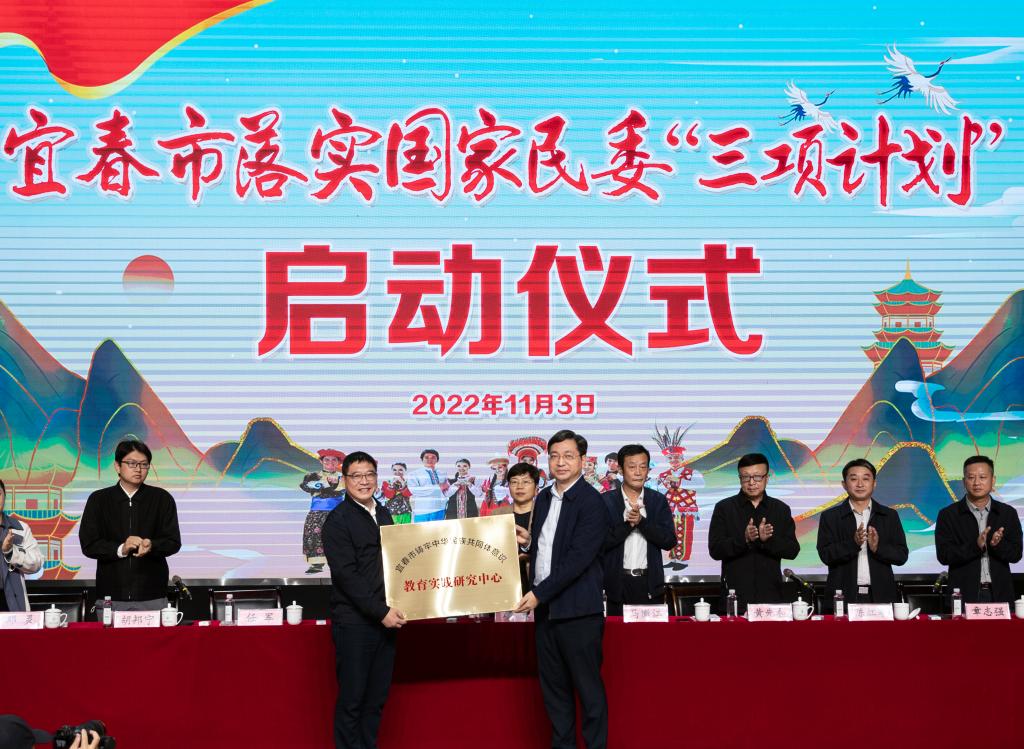 11月3日下午,宜春市落实国家民委“三项计划”启动仪式及“宜春市铸牢中华民族共同体意识教育实践研究中心”授牌仪式在买球官网博达楼演播厅举行。省民宗局党组成员、副局长廖敏,省民宗局二级巡视员马徽江,市委常委、统战部部长徐绍荣,省民宗局民族社会事业处副处长、三级调研员陈红军,省高校铸牢中华民族共同体意识研究中心常务副主任、南昌大学人文学院党委副书记胡邦宁副教授,市委统战部常务副部长、市民宗局局长黄先和,市委统战部副部长章志强,市民族宗教事务中心主任邓灵,市民族工作领导小组成员单位分管同志,买球官网党委书记任军等党政领导班子成员、相关部门负责人、中心专家库成员及少数民族学生代表200余人参加仪式。启动仪式由黄先和主持。