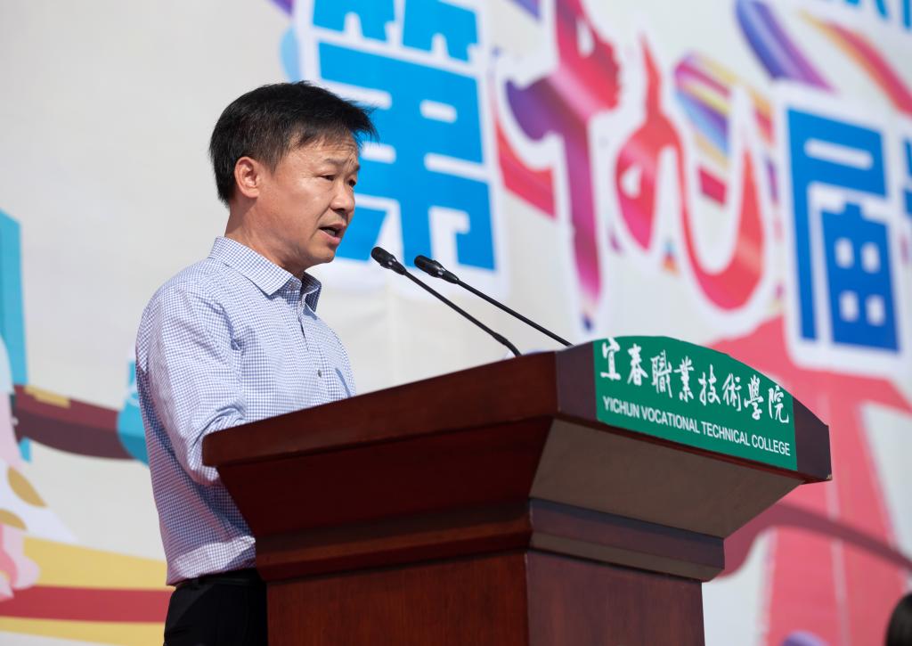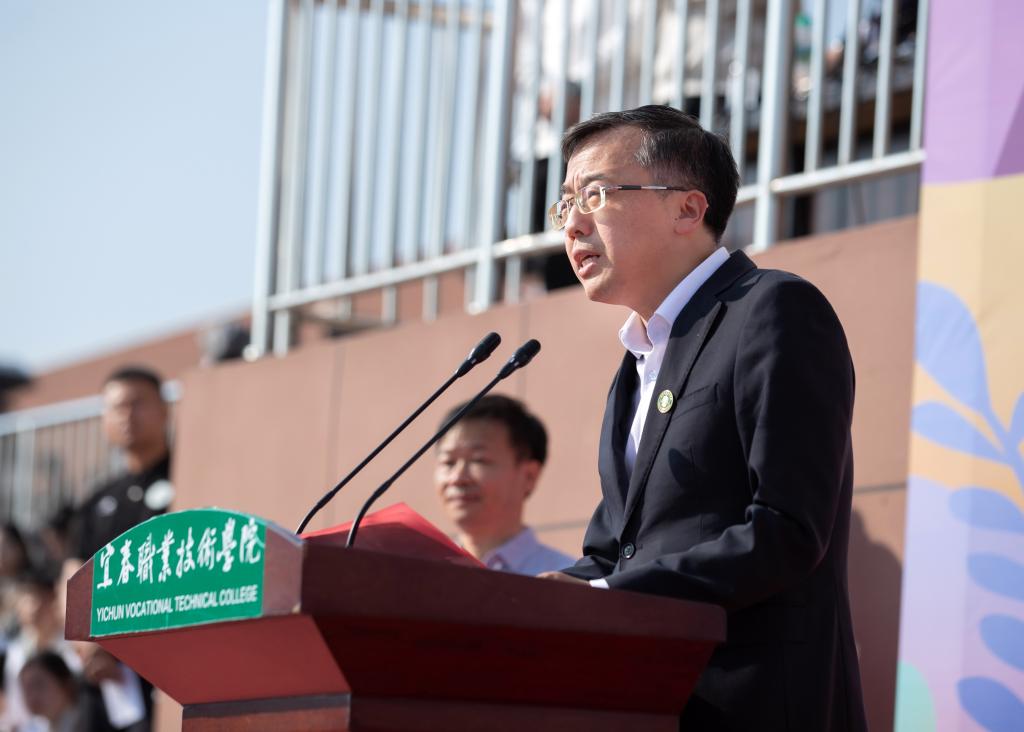 随着雄壮的国歌响起,全体师生起立行注目礼,五星红旗缓缓升起,飘扬在操场上空。党委副书记、校长邱军致开幕词。他首先向本届校运会的裁判员、教练员、运动员、工作人员表示崇高的敬意,向为本届校运会付出辛勤劳动的各位老师、同学表示衷心的感谢!他表示,本届校运会的召开是买球官网深入学习贯彻落实党的二十大精神、积极参与体育强国建设的自觉行动,也是深化“五育并举”,落实立德树人根本任务的有力举措。他希望能通过本届运动会检阅宜职体育新成果,展示宜职师生新风貌,塑造宜职运动新风尚。希望宜职学子能充分发扬“使命在肩,奋斗有我”的精神,在奋进新时代,迈向新征程中展现新担当、共创新辉煌。