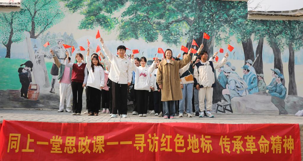 走出旧址,星光社会实践活动小组成员汇集到太平村舞台,挥舞手中鲜红的党旗,高声齐诵。“请党放心,强国有我”“壮哉,我中国少年,与国无疆!”……嘹亮的声音回荡于舞台上空,抒发了新时代青年对党、对祖国最真挚的热爱。