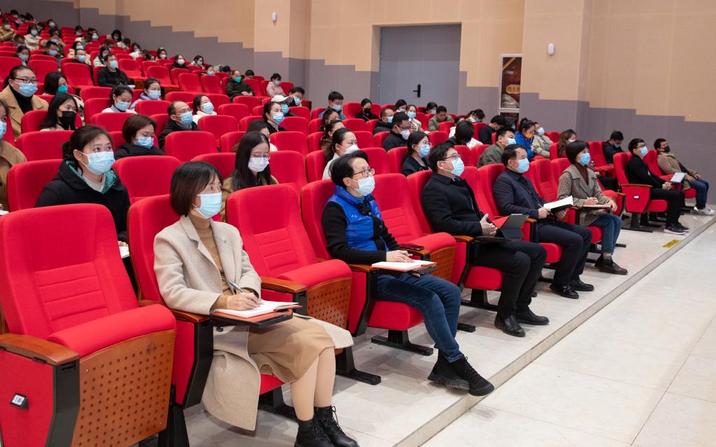 12月12日,学习贯彻党的二十大精神市委宣讲团到买球官网博达楼报告厅举行宣讲报告会。市委宣讲团成员、市纪委副书记、市监委副主任康新贞作宣讲报告。校党委书记任军等党政领导班子成员,各基层党组织党员代表,部分学生代表在场聆听。报告会由任军主持。