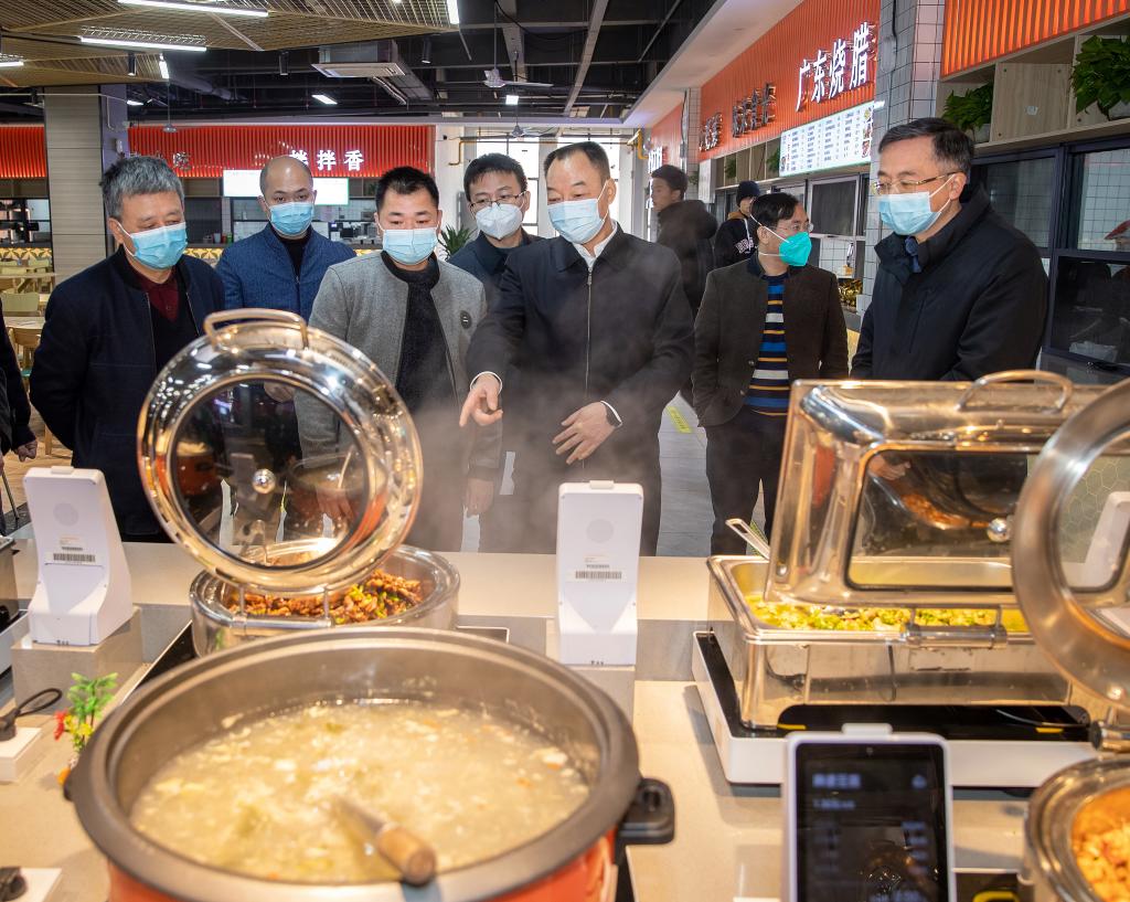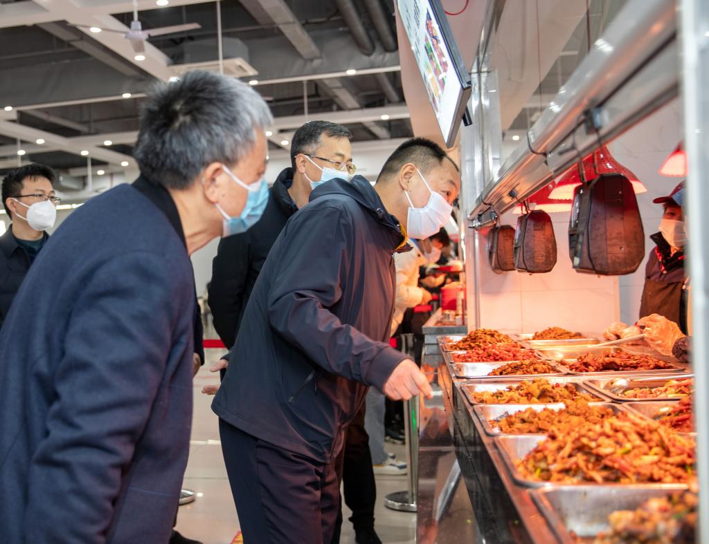 夏红色强调,保障食品安全是一项非常重要的工作,要坚持产管并重,严防严管严控食品安全风险,全力保证师生“舌尖上的安全”。要坚持系统思维,把属地管理责任和学校主体责任有机统一起来,互相衔接、贯通协同,形成完整的工作闭环。(摄影 欧阳富萍)