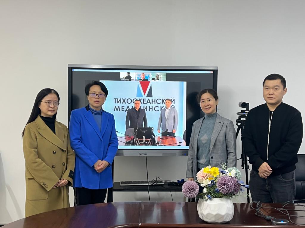 太平洋国立医科大学院长理事会主席(副校长)科罗廖夫·伊戈尔·鲍里索维奇、国际办公室主任卢戈沃伊·罗曼·阿纳托列维奇、国际办公室叶普勒·扎波娃·阿纳托列耶夫娜,买球官网党委委员、副校长刘江毅,国际教育学院(国际合作与交流处)书记刘海云,国际合作与交流处教授钟菊英,国际教育学院副院长杜欣宇,国际与合作交流科科长江萍,参与了此次座谈会。