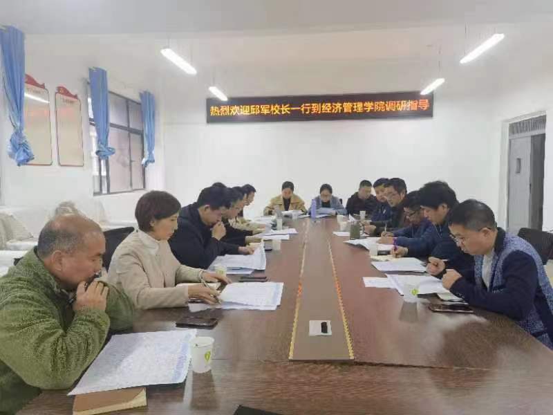 本站讯(经济管理学院 刘迎曦 邓如星)为更好地推进买球官网“双高计划”专业建设工作,3月29日下午,校党委副书记、校长邱军,副校长易滨秀携教务处、发展规划处、党政办、人事处、社会合作办等部门负责人一行来经济管理学院对专业设置进行调研指导。经济管理学院班子、各专业带头(负责)人等出席会议。