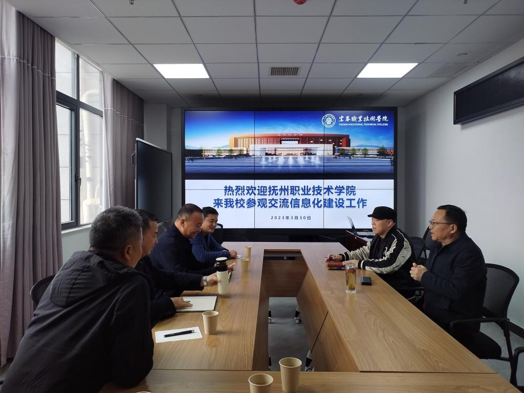 本站讯(网络信息管理中心 王志强) 3月30上午 ,抚州职业技术学院党委委员、副院长胡焰林一行五人来买球官网考察交流,双方在天工楼A504会议室召开座谈会。党委副书记黄继斌、网络信息管理中心主任杨丹等同志参加座谈。