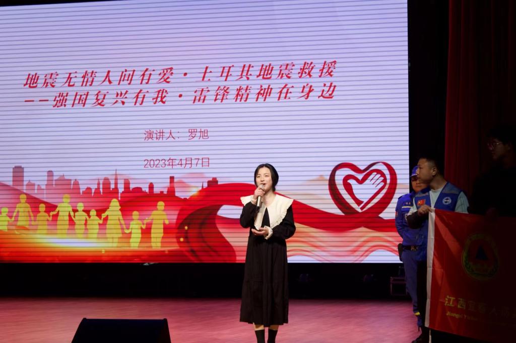 活动伊始,罗旭介绍了宜春蓝天救援队的发展历程,并展示救援队支援土耳其时的照片及视频,彰显了宜春蓝天救援队在国际危机时体现出的使命感和担当精神。