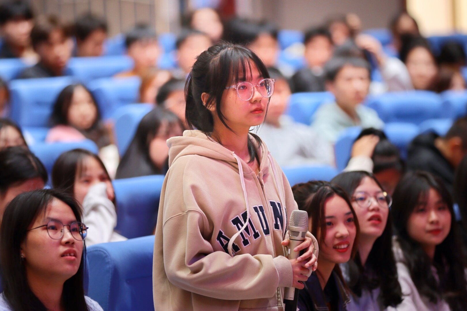 讲座结束,罗旭积极和现场同学互动,并为大家答疑解惑。当同学们问到她前往灾区救援是否害怕时,她表示灾难面前,大家齐心协力,全力以赴克服挑战,这是他们支援时强有力的护盾。