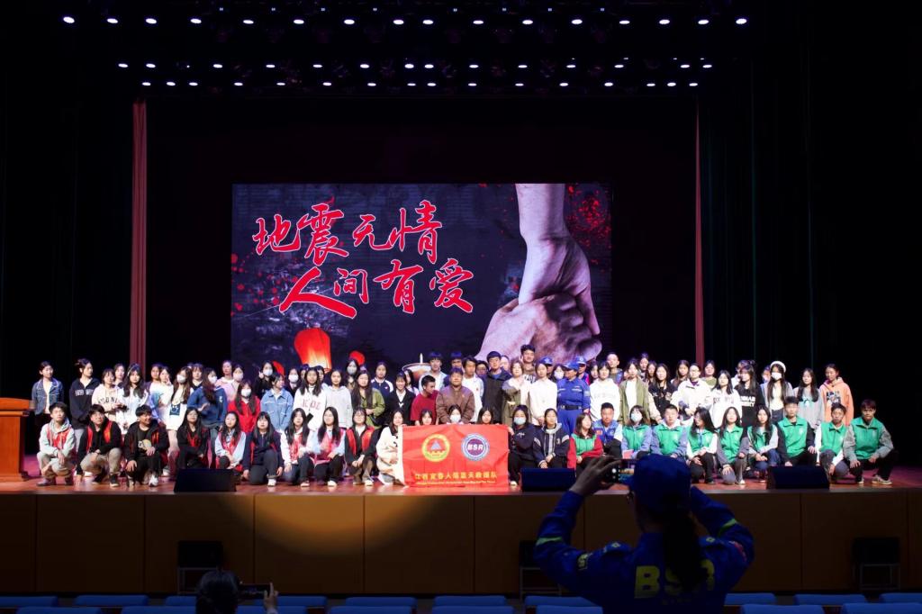最后,蓝天救援队的成员与学生代表、工作人员一起合影留念。